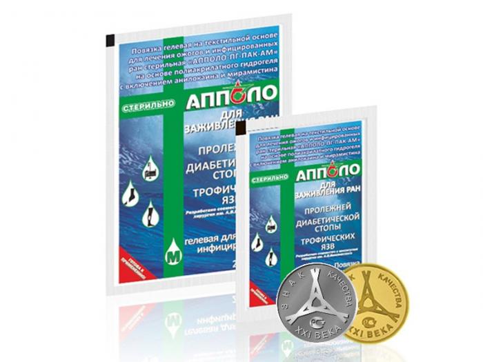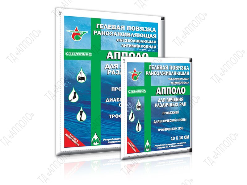 В последние годы внедрены новые биологически активные перевязочные средства на основе природных и синтетических полимеров, содержащие лекарственные препараты, оказывающие активное воздействие на ткани раны и течение раневого процесса за счет специфических свойств основы – гелевые повязки «АППОЛО» с антисептиком мирамистином и анестетиком анилокаином. Они выпускаются в виде индивидуально упакованной гелевой субстанции и в виде гелевых повязок на сетчатой подложке. Гидрогель, на основе которого созданы данные средства, создан на основе сополимера акриламида и акриловой кислоты. Сетчатая структура повязки имеет хлопчатобумажное происхождение, что обеспечивает высокую впитывающую способность, возможность моделировать повязку по поверхности раны, возможность безболезненной перевязки. Также гель рекомендуется для применения при ранах на открытых частях тела и на участках тела, где применение повязки является невозможным.