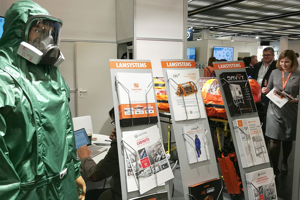 Посетители стенда LAMSYSTEMS интересовались продукцией компании, предназначенной для защиты от биологической опасности – это противочумная одежда, изолирующие костюмы биологической защиты X-BIO, переносной изолятор и мобильная дезинфекционная камера. Много внимания привлек к себе транспортировочный бокс, не имевший аналогов на этой выставке. Сотрудники структур здравоохранения заинтересовались уникальной запатентованной приточно-вытяжной системой вентиляции с двухкаскадной фильтрацией. Также изолятор интересовал представителей спецслужб – огнеборцев, рассматривавших его как транспортировочное средство для пострадавших при пожарах.