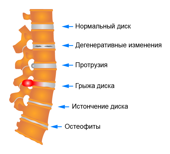 травмы. В результате механического повреждения позвоночника может произойти необратимое нарушение структуры хряща. Травма способна привести к развитию дегенеративного процесса в позвоночном диске.