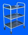 Тележка для медикаментов и инструментов Т.Б.М-1 Тележка для медикаментов и инструментов Т.Б.М-1 металлическая, сварная, каркас выполнен из стальной трубы, порошковое покрытие, имеет две дугообразные ручки. Три съемных поддона, нержавеющая сталь, на колесах д. 100 мм импортного производства.