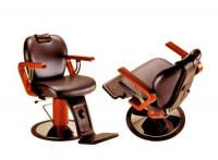 Парикмахерское кресло для мужчин c откидывающейся спинкой и регулируемым по высоте подголовником.