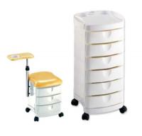 Тележка с тремя взаимозаменяемыми выдвижными ящиками с подставкой - регулируемой по высоте.