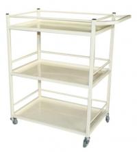 Тележка приборная ИМТ-9. Предназначена для перевозки инструментов, электронных приборов, медикаментов. Размеры: Длина, мм: 750 Ширина, мм: 440 Высота, мм: 875 Вес изделия, кг: 15.6 Каркас сварной металлический из труб диаметром 191.5 мм, труба 2020*1.2. Три металлические полки из листа 1.2 мм. 4 колеса фирмы «TENTE» (Германия) с диаметром 75 мм. Одно колесо имеет тормозное устройство. Покрытие декоративно-полимерное порошковыми красками, стойкими к дезинфицирующим растворам. Цвет по согласованию с заказчиком.