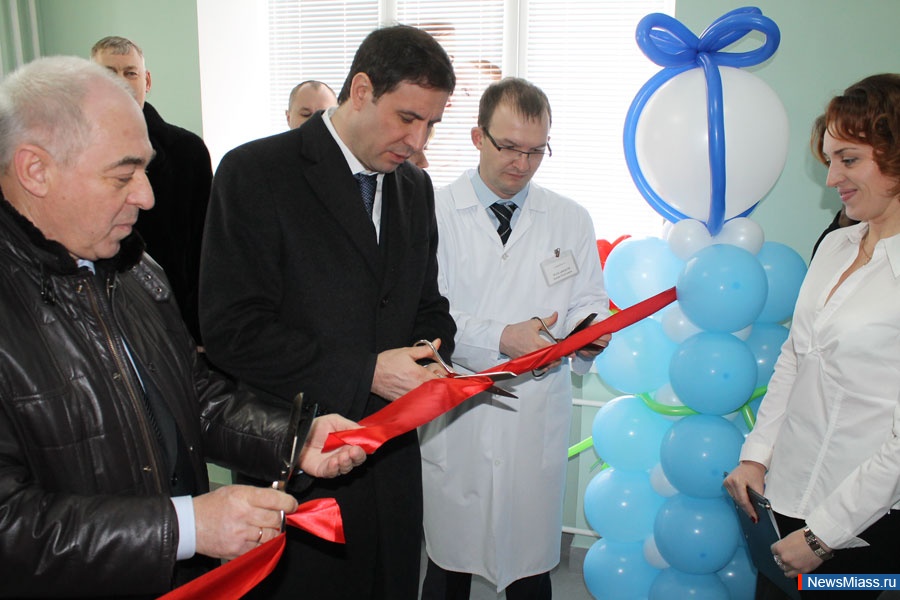Право перерезать «красную ленточку» было предоставлено губернатору Челябинской области Михаилу Юревичу, главе Миасского городского округа Игорю Войнову и главному врачу городской больницы № 2 Денису Маханькову.