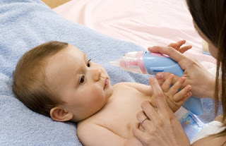 В аптеках предлагается несколько видов приборов. Самый обычный назальный аспиратор представляет собой «грушу» - клизмочку. В набор такого аспиратора входят силиконовые насадки, с помощью которых обеспечивается безопасность использования. Аспиратор - спринцовка действует так: для начала нужно выпустить воздух из "груши", затем одним пальцем зажать одну ноздрю ребенка, а из второй ноздри вставив «грушу» плавно разжимая ее, откачать имеющиеся выделения из носа малыша.