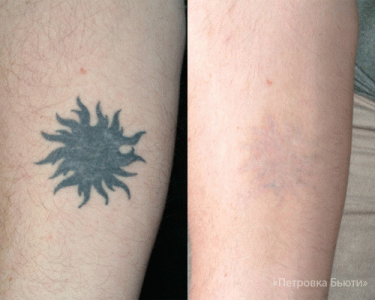 На фото (фото 1, фото 2) представлены цветная татуировка и результат воздействия лазерной рабочей станции PicoSure через 1 месяц после 3 сеансов.