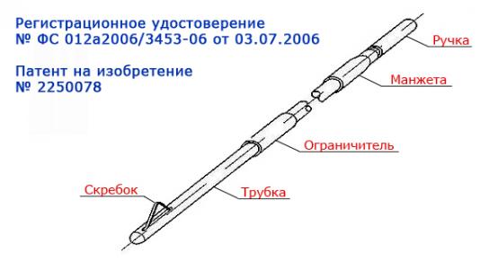 Устройство для внутриматочной биопсии УВБ - «Вектор» Более чем в 200 лечебных учреждениях России успешно применяется это изделие. ЗАО «Вектор» предлагает вниманию врачей онкологов и гинекологов оригинальное одноразовое полимерное устройство, позволяющее быстро и безболезненно получать информативный материал из полости матки для цитологического и гистологического исследований. Краткое описание устройства. Устройство для внутриматочной биопсии (далее устройство) состоит из трубки диаметром 3 мм и длиной 265 мм, имеющей боковое отверстие на дистальном конце, и штока с ручкой. Шток размещается внутри трубки. На дистальном конце штока, расположенном в полости дистального конца трубки, имеется эластичный скребок с возможностью его выхода за контуры трубки через боковое отверстие. Торец дистального конца трубки имеет сферическую атравматичную форму, а на противоположном ее конце находится уплотняющее устройство (манжета). На трубке расположен ограничитель. Работа устройства. В исходном (транспортном) положении шток слегка выдвинут из трубки - при этом скребок находится внутри трубки напротив бокового отверстия. Ограничитель устанавливается на нужную глубину введения устройства в полость матки, и устройство за трубку вводится в матку до ограничителя. Удерживая трубку, шток подается вперед до упора – при этом скребок через боковое отверстие в трубке выходит наружу. Вращением устройства скребком отделяется от стенок матки биоматериал, который засасывается через боковое отверстие трубки внутрь при выдвижении штока, после чего устройство с биоматериалом удаляется из полости матки. Скребок при выдвижении штока возвращается внутрь трубки. Преимущества устройства. Наличие скребка обеспечивает при вращении устройства системную биопсию эндометрия и представительность пробы. Расположение скребка внутри трубки при прохождении цервикального канала, сферическая поверхность дистального конца трубки и ее небольшой диаметр позволяют безболезненно вводить устройство в полость матки в амбулаторных условиях. Уплотнение на проксимальном конце трубки позволяет увеличить количество забираемого биоматериала за счет исключения подсоса воздуха. При необходимости устройство может использоваться для аспирации содержимого матки без биопсии.