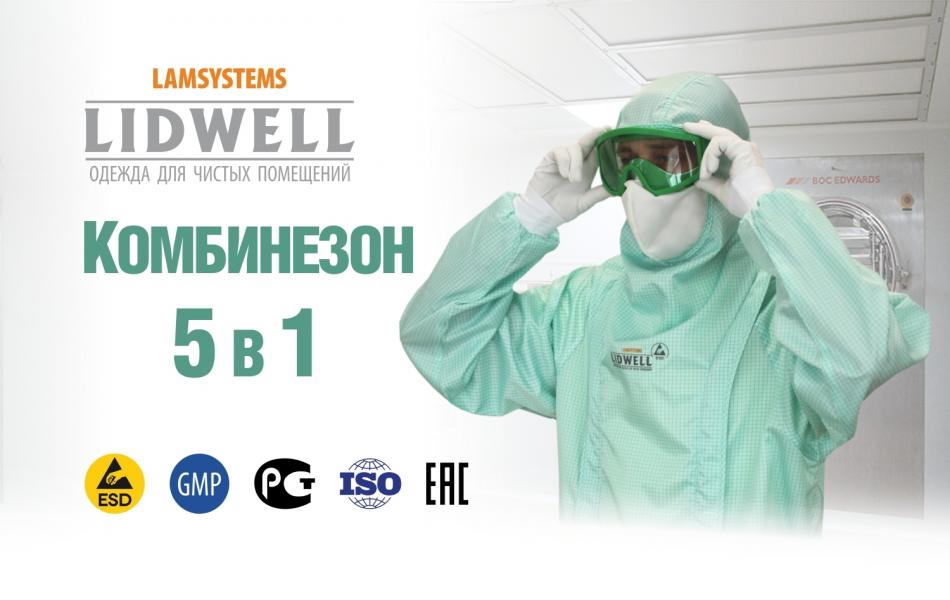 Не секрет, что комплекты одежды, используемой при работе в чистых помещениях, состоят сразу из нескольких элементов. Куртки, брюки, шапочки, специализированная обувь, защитные очки – надеть это по отдельности и в правильном порядке довольно сложная и трудоемкая задача. Для того чтобы облегчить эту процедуру, специалисты ООО «Лаборатория Технологической Одежды» усовершенствовали конструкцию комбинезона, создав изделие «5 в 1».