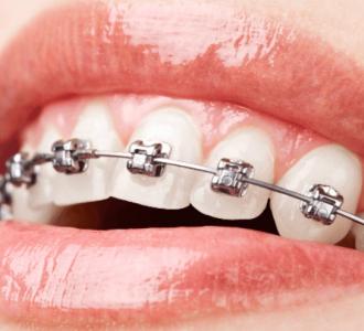 2. Брекеты. Особенно часто применяются для подростков после достижения 11-12 лет, могут решить проблему с прикусом любой сложности. Состоят из скоб, стянутых силовой дугой, материалом их изготовления бывают металлы, пластик, керамика и т.д.