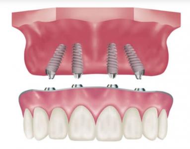 Подобная методика применима к пациентам, у которых вообще нет зубов или осталось их минимальное количество. Предполагается установка протеза с полным рядом зубов, а также минимальное хирургическое вмешательство. Для фиксации монтируется всего 4–6 имплантатов.