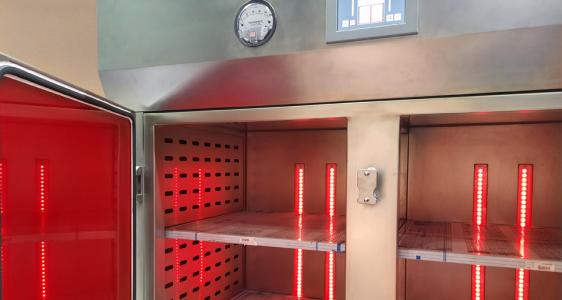 Освещение рабочей камеры – светодиодное. Предусмотрено два режима освещения «дневное» и «ночное», цвет освещения для обоих режимов подбирается вручную в системе RGB (например, красный свет). Также доступна функция автоматического управления освещением рабочей камеры. При её активации переключение с дневного на ночной и с ночного на дневной свет происходит автоматически в заданное время суток.