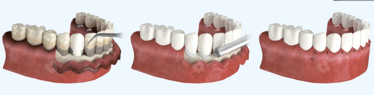 Процесс чистки десневых карманов проходит в несколько этапов:
