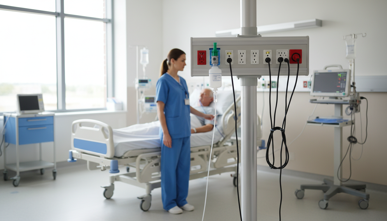 В операционной каждая розетка имеет свое строго определенное место. Как правило, их монтируют на потолочных консолях или на настенных панелях в изголовье. Но просто повесить на стену мало — нужно соблюсти десяток параметров: