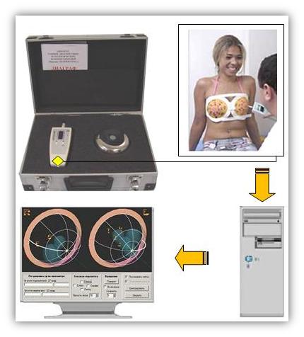 Прибор «ДОТ» ( mammoterm), предназначен для экспресс диагностики и мониторинга заболеваний молочных желез с целью обнаружения патологических новообразований на ранней стадии их развития (не пальпируемых), их классификации на доброкачественность и злокачественность, для наблюдения за результатами лечения и профилактики заболеваний в целом.