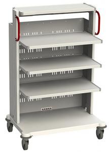 Изготовлены из конструкционной стали и специальных алюминиевых профилей, окрашенных полимерными красками. Наружные поверхности полок и основания выполнены из текстурированного листового ABS-пластика. Стойки для аппаратуры оснащены колесами Ø125 мм с повортным механизмом, два из которых с тормозами. Для удобного перемещения предусмотрены две боковые ручки красного цвета.