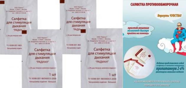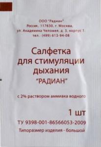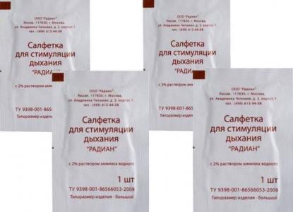 Медицинское изделие Салфетка для стимуляции дыхания «РАДИАН» с 2% раствором аммиака в индивидуальной упаковке