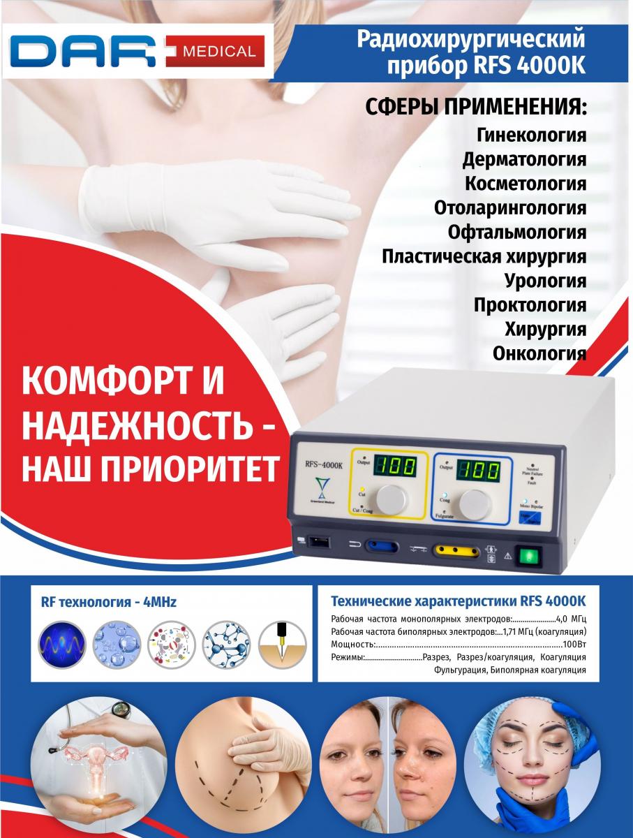 Радиоволновой хирургический аппарат нового поколения который создан с учетом многочисленных пожеланий практикующих врачей и сочетает в себе последние достижения радиоволновой хирургической техники, надежность , универсальность использования в разных областях медицины и хирургической косметологии.