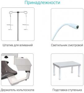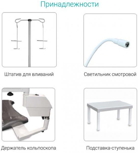 Предназначено для проведения гинекологических и урологических осмотров, обследований, манипуляций, кольпоскопии. Данная модель рекомендована для оснащения амбулаторий, женских консультаций и поликлиник.