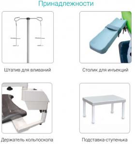 Широкий диапазон регулировок положений панели кресла и его составных частей обеспечивает возможность использования кресла для проведения гинекологических или урологических осмотров и процедур даже для людей с ограниченными физическими возможностями, для которых посадка в кресло, спроектированное для обычных пациентов, является затруднительной.