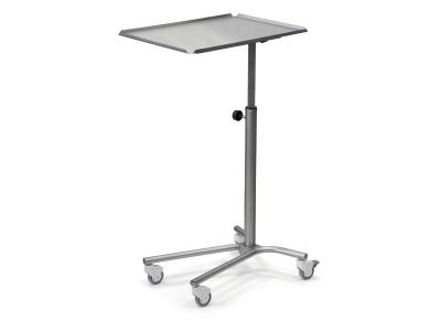 Возможность поворота рабочей поверхности в горизонтальной плоскости позволяет устанавливать столик над панелями операционных столов различных моделей. Это удобно для работы операционной бригады. Регулировка высоты и положения рабочей поверхности столика производится вручную с фиксацией при помощи винтовых зажимов. Основание столика имеет поворотные обрезиненные колесные опоры Ø 80 мм, две из которых с тормозом.