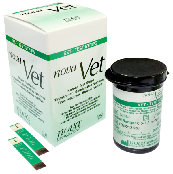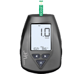 Ветеринарный анализатор глюкозы и кетонов NovaVet измеряет уровень бета-гидроксибутирата (BHB) в крови животных, а также «золотой стандарт» для выявления субклинического кетоза, используя крошечную каплю крови. Анализатор глюкозы и кетонов NovaVet обеспечивает точность, сравнимую с эталонными лабораторными исследованиями в пороге субклинического BHB для прогнозирована риска для здоровья у коров ранней лактации. Количественные результаты BHB исключают субъективную интерпретацию полуколичественных цветовых диаграмм, используемых при тестировании кетонов молока или мочи.