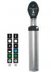 Офтальмоскоп PICCOLIGHT E55 – батареечная рукоятка (AA) – вакуумная лампа 2,5 B – с колесиком плавно корректирующим диапазон линз от +20 до –20 диоптрий – асферическая оптика, высокая точность – в сумочке из ткани – батарейки: 2 Mignon