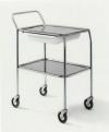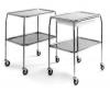 Тележка для медсестры 262 - Каркас из хромированных стальных труб - 2 подноса из нержавеющей стали, зафиксированные - Колеса d100мм. позволяют легко перемещать тележку - Тележки можно поместить под стол с высотой 800мм. - Ручка Принадлежности: - Ящик для принадлежностей, пла