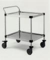 Тележка для сбора медицинских проб 255 - Каркас медицинской тележки из хромированной стальной трубы - Пластмассовые поддоны имеют борта - Колеса диаметром-75 мм.