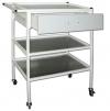 Стол манипуляционный СМ-03 Столик манипуляционный СМ-3 предназначен для размещения хирургических инструментов, материалов и медикаментов, как на полках, так и внутри столика. Используется в перевязочных, операционных и манипуляционных кабинетах. Столик изготовлен из металлическог