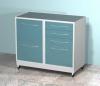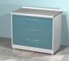 Передвижная тумба AR-40 AR-40 (передвижной тумба с двумя выдвижными ящиками, сбоку ручка, сверху стекло) ; изготавливается из стали листовой и покрывается полимерным покрытием (200 цветов), стандартный цвет белый (RAL 9003) оснащен колёсами верхняя крышка (столешница) из стал