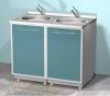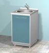 Металлическая тумба AR-04B Напольный металлический модуль, изготовлен из листовой стали и покрыт полимерным покрытием (200 цветов), стандартный цвет белый (RAL 9003). С откидной металлической дверью, корзиной для мусора, круглой мойкой из нержавеющей стали, локтевым смесителем (в