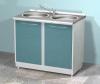 Металлическая тумба AR-04 Тумба с распашной металлической дверью, мойкой и смесителем. Столешницы - постформинг, нерж.сталь, стекло, камень. Сантехника Дополнительная информация: Mодуль: 880 х 500 х 600 мм изготавливается из стали листовой и покрывается полимерным пок