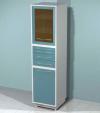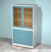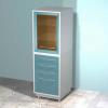 Шкаф металлический AR-84 AR-84 изготавливается из стали листовой и покрывается полимерным покрытием (200 цветов), стандартный цвет белый (RAL 9003) количество выдвижных ящиков 2 и одна распашная застекленная дверь с двумя стеклянными полками. AR-84C - с бактерицидной лампо