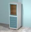 Шкаф металлический AR-87 AR-87 изготавливается из стали листовой и покрывается полимерным покрытием (200 цветов), стандартный цвет белый (RAL 9003) количество выдвижных ящиков 8 и одна распашная застекленная дверь с двумя стеклянными полками. AR-87C с бактерицид