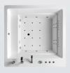 Гидротерапевтическая ванна EVO Ванна из сантехнического литого акрила, установленная на алюминиевой раме и устройством слива перелива. Ванна встраивается в подиум. Ванна комплектуется в следующих вариантах: 1. Аэро (S2) - с системой воздушного массажа (14 форсунок) и электронной пане