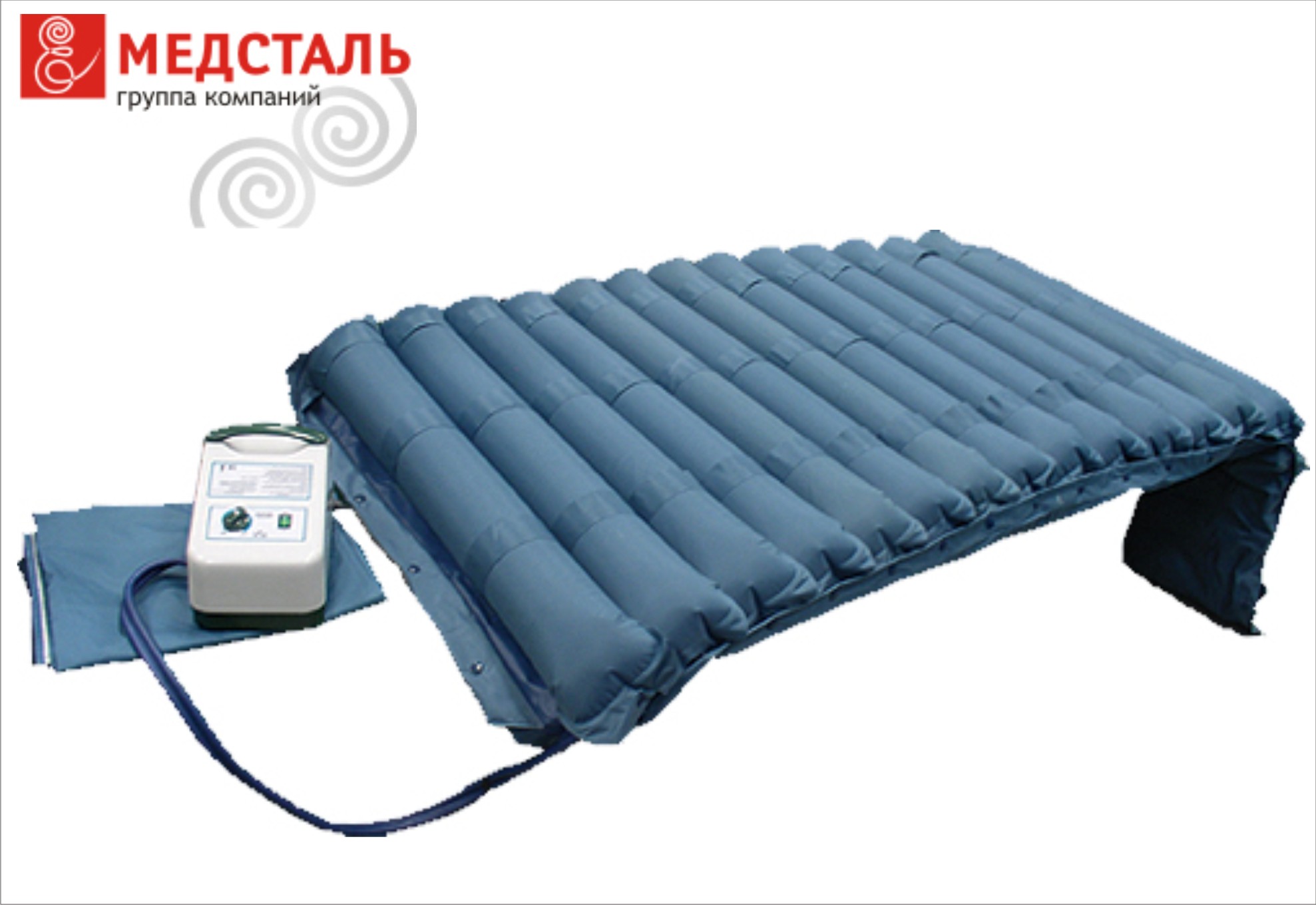 Благодаря работе компрессора, нагнетающего воздух попеременно в разные камеры матрасов, обеспечивается круглосуточное массажное воздействие на мягкие ткани пациента. Что позволяет устранить причину возникновения пролежней.