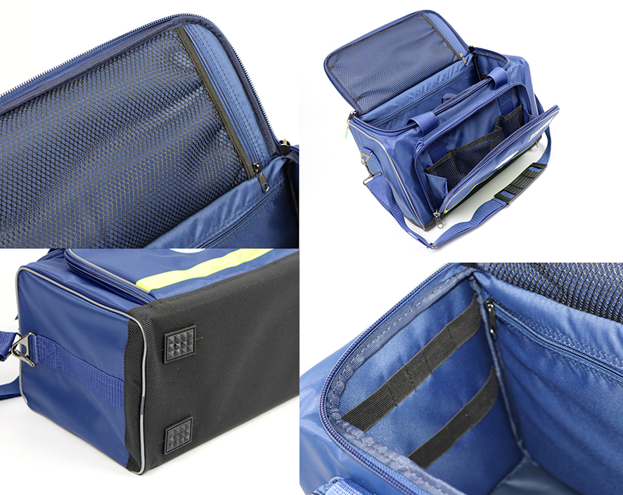 Описание: Сумки универсальные выполнены из синтетической водоотталкивающей ткани ПВХ, которая легко дезинфицируется. Специальные конструкции сумок обеспечивают надежную защиту всех вложений, а также удобный доступ к ним. Все сумки снабжены усиленными молниями и прорезиненным дном, что дополни тельно увеличивает срок эксплуатации изделия.Большое количество внешних и внутренних карманов обеспечивает удобное размещение медицинского и личного имущества, при необходимости на дне сумок можно также расположить дополнительные вкладыши-ячейки (в комплект поставки не входит).Все универсальные сумки имеют на своем корпусе светоотражающие элементы для безопасной работы в темное время суток, место крепления шевронов, держатель информационной таблички для обозначения набора/указания номера бригады/другой информации. Для транспортировки имеются удобные крепкие ручки и плечевой ремень с накладкой.