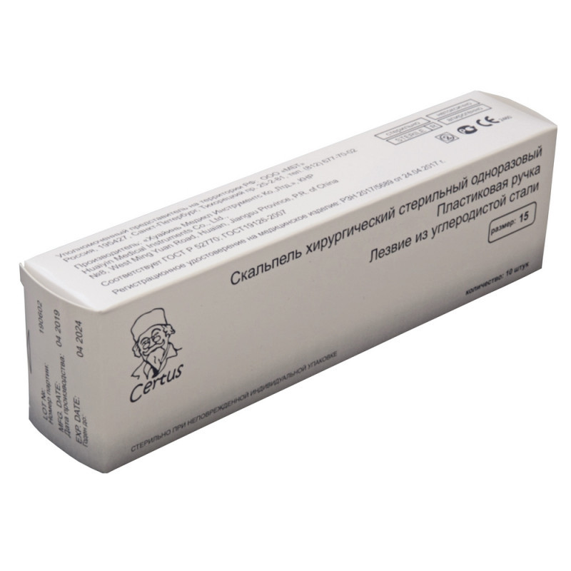 Cкальпель хирургический CERTUS стерильный однократного применения из углеродистой стали