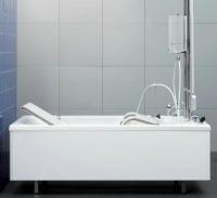 устанавливается в ванну. Процедурная емкость с раствором находится выше